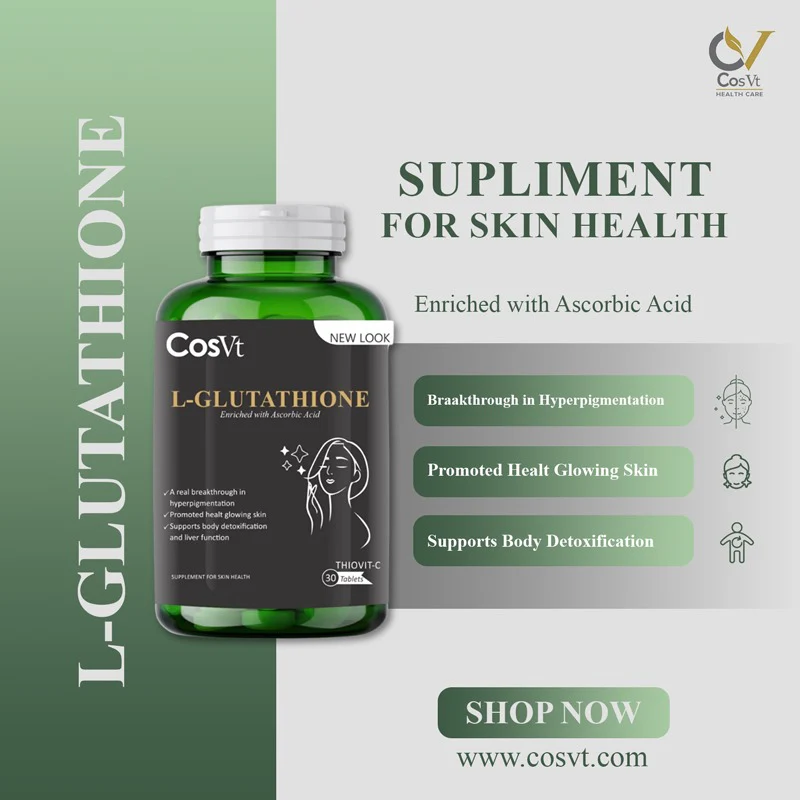 Achieve a radiant, glowing complexion with COSVT’s L-Glutathione Supplement, formulated with 500 mg of L-Glutathione and 5 mg of Ascorbic Acid. This powerful antioxidant blend is designed to support overall skin health, promoting a brighter and more even skin tone while enhancing your body’s natural detoxification processes.
